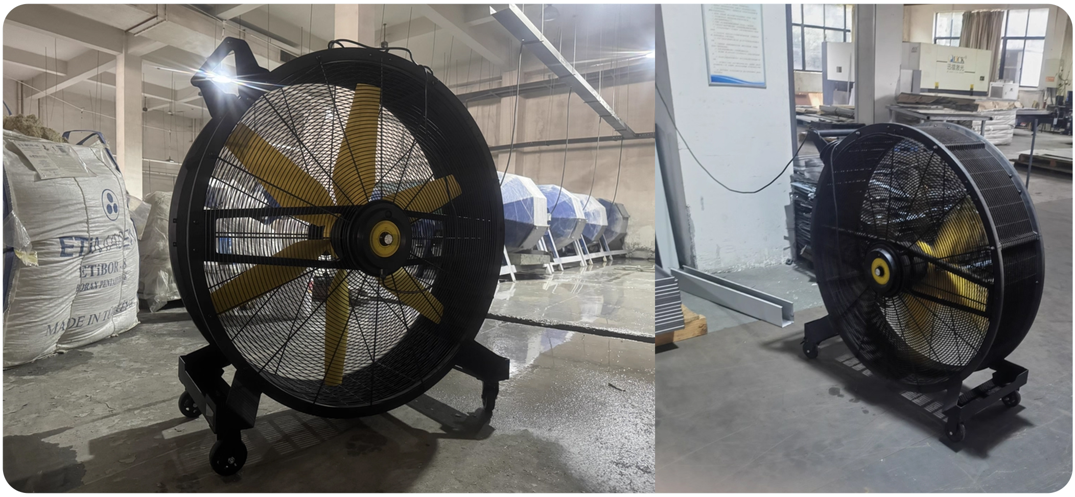 小型落地扇:覆盖范围有限(单台仅覆盖3-5㎡),需大量部署才能覆盖车间仓库全域,叠加能耗高,且局部强风易干扰精密操作;