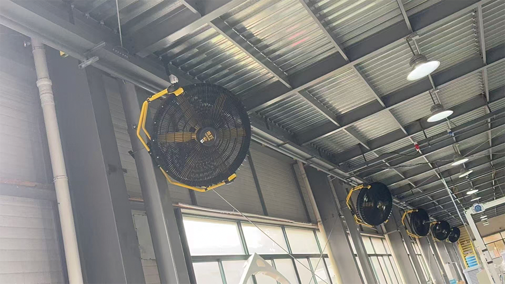 传统降温方案适配性差:落地扇、壁扇等小型设备覆盖范围窄,仅能实现局部空气循环,无法有效降温,且易与搬运车辆、作业人员发生碰撞,存在安全隐患;中央空调因车间空间过大,能耗惊人,日均电费超1800元,且对岗位局部高温的降温效果不佳,性价比极低;