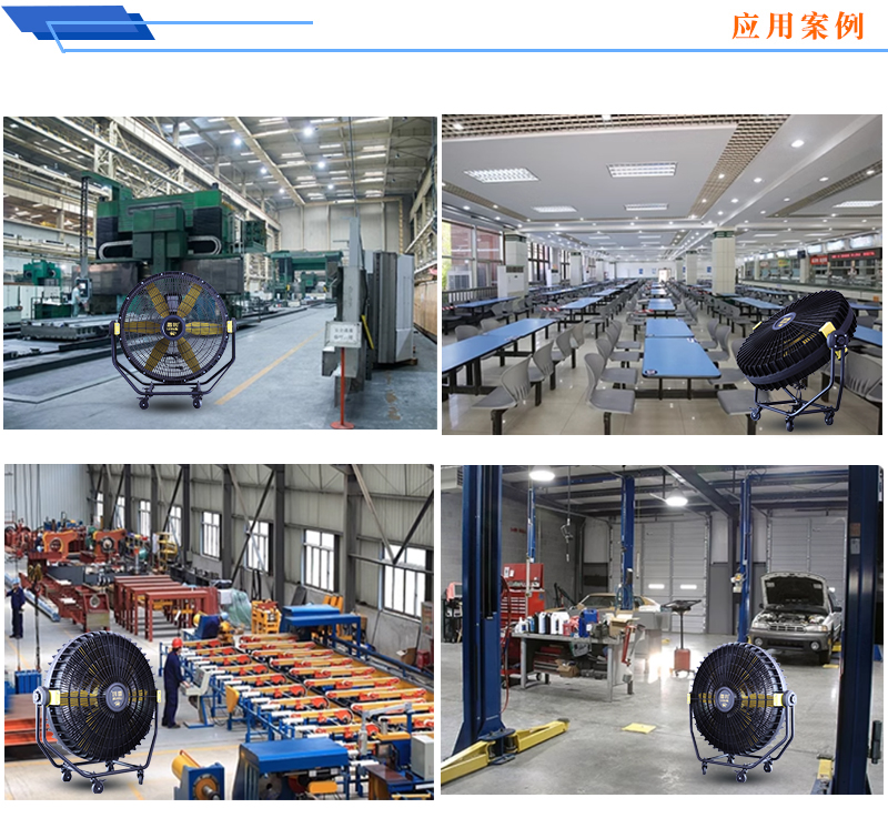 工业厂房:机械加工、五金、注塑、纺织、电子、包装、钢结构厂房等大面积通风降温。