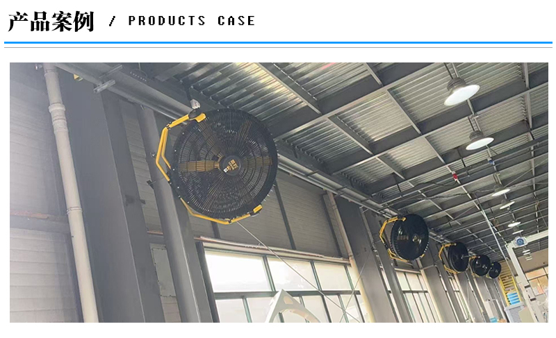 工业厂房:机械加工、五金、注塑、纺织、电子、包装、钢结构厂房等大面积通风降温。