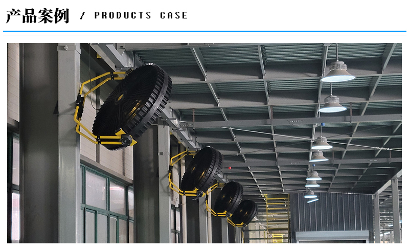 工业厂房:机械加工、五金、注塑、纺织、电子、包装、钢结构厂房等大面积通风降温。