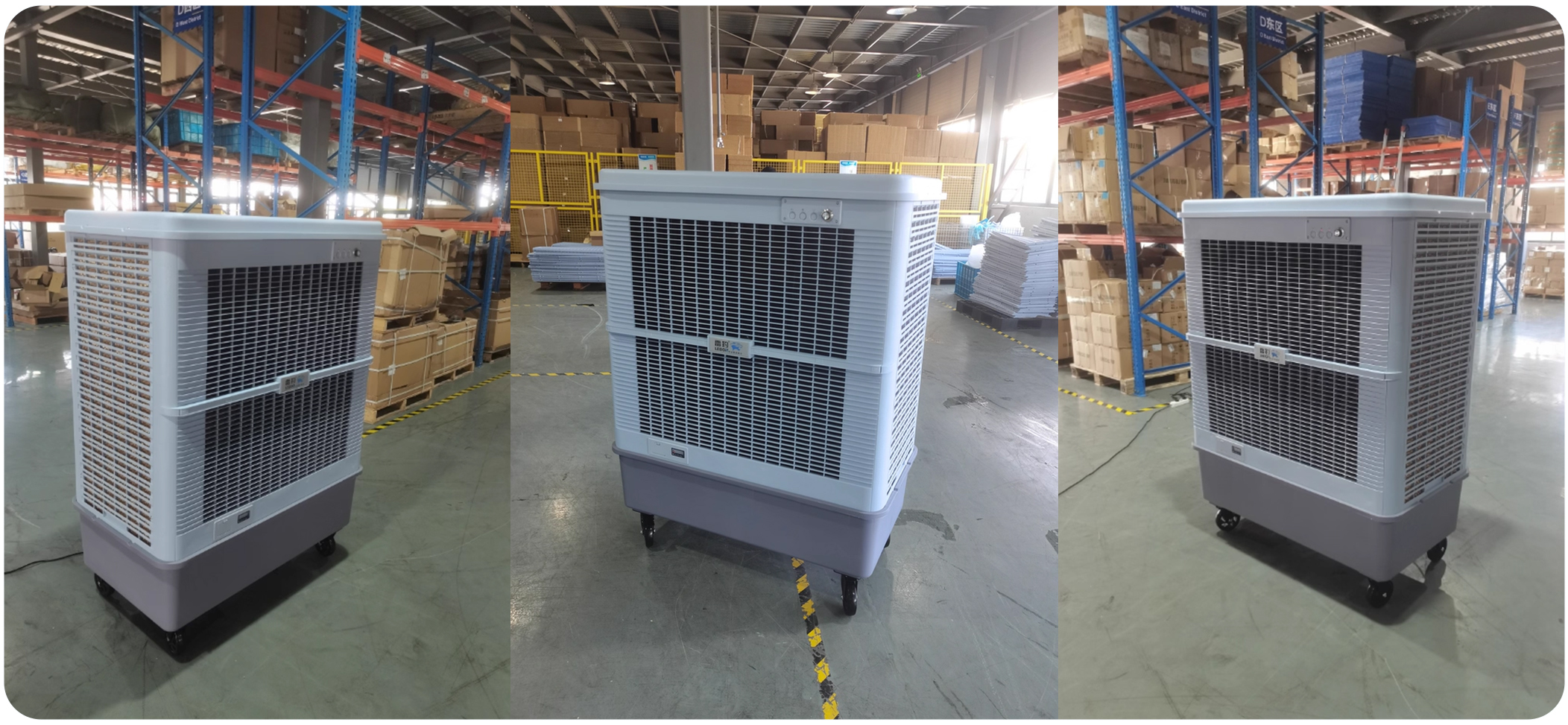 1.高效降温 + 全域覆盖,适配高大空间设备采用蒸发吸热原理,以水为介质无需制冷剂,可快速将环境温度降低 ,高效破解仓库高温难题。搭配优化直流无刷电机,单台可覆盖 200平方米空间,完美适配仓库高大开阔的布局特点,少量设备即可实现全仓库无死角均匀降温,避免 “局部闷热、局部过冷” 的情况,让不同区域的作业人员都能享受舒适环境。