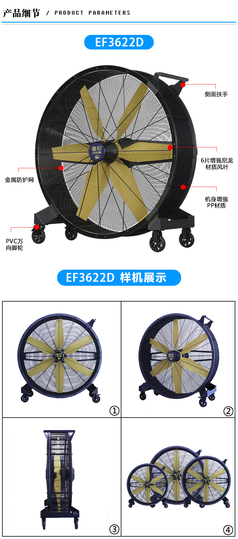 工业移动大风扇 雷豹EF3622D
